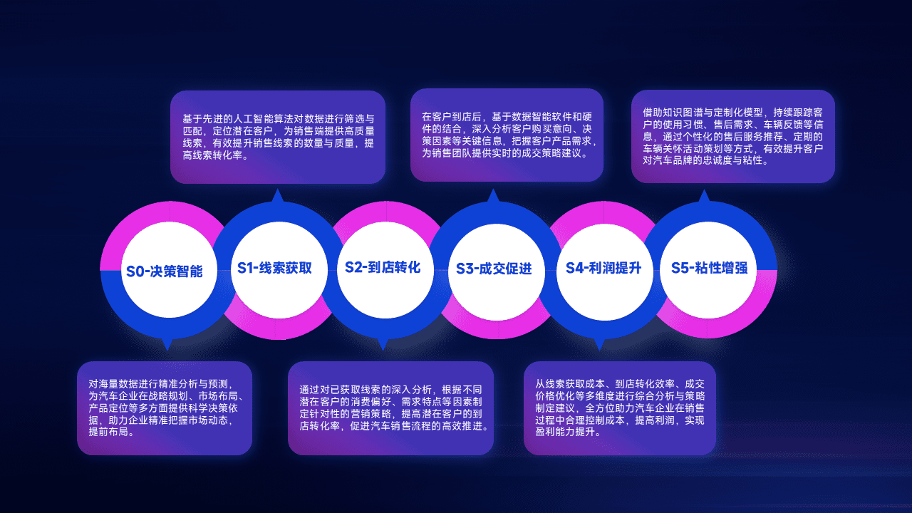 通过拓宽潜在客户来源、、、优化线索分配并提高到店转化率,,,以增强销售效率。。。同时,,,利用线索数据不断优化分析模型,,,有效提升转化率,,扩大营销影响力。。